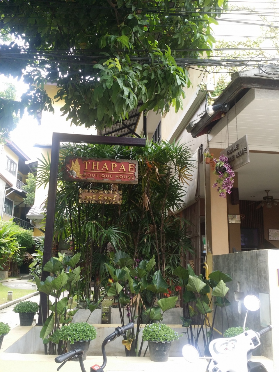 ターペー門から徒歩5分くらいです。ターペー門を背にしてターペー通りを少し行って、soi5を入って行くと右側にあります。
