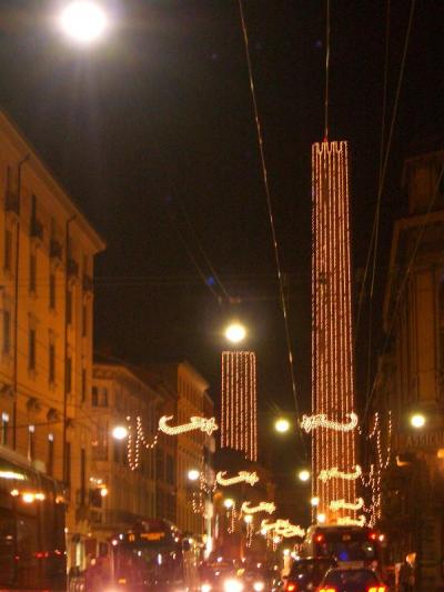 チェントロの大きな通り。オレンジ色の光りが、とてもキレイ☆