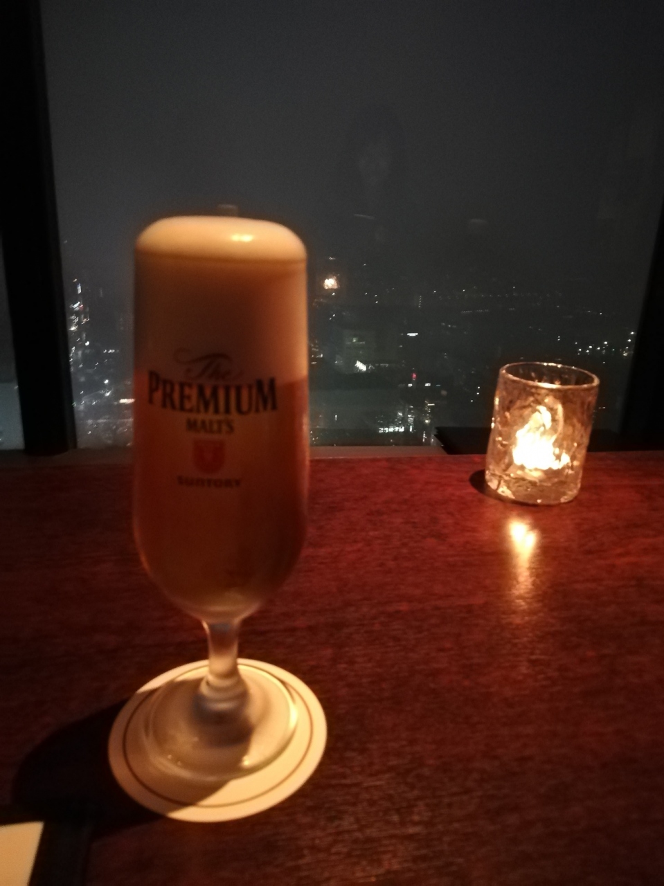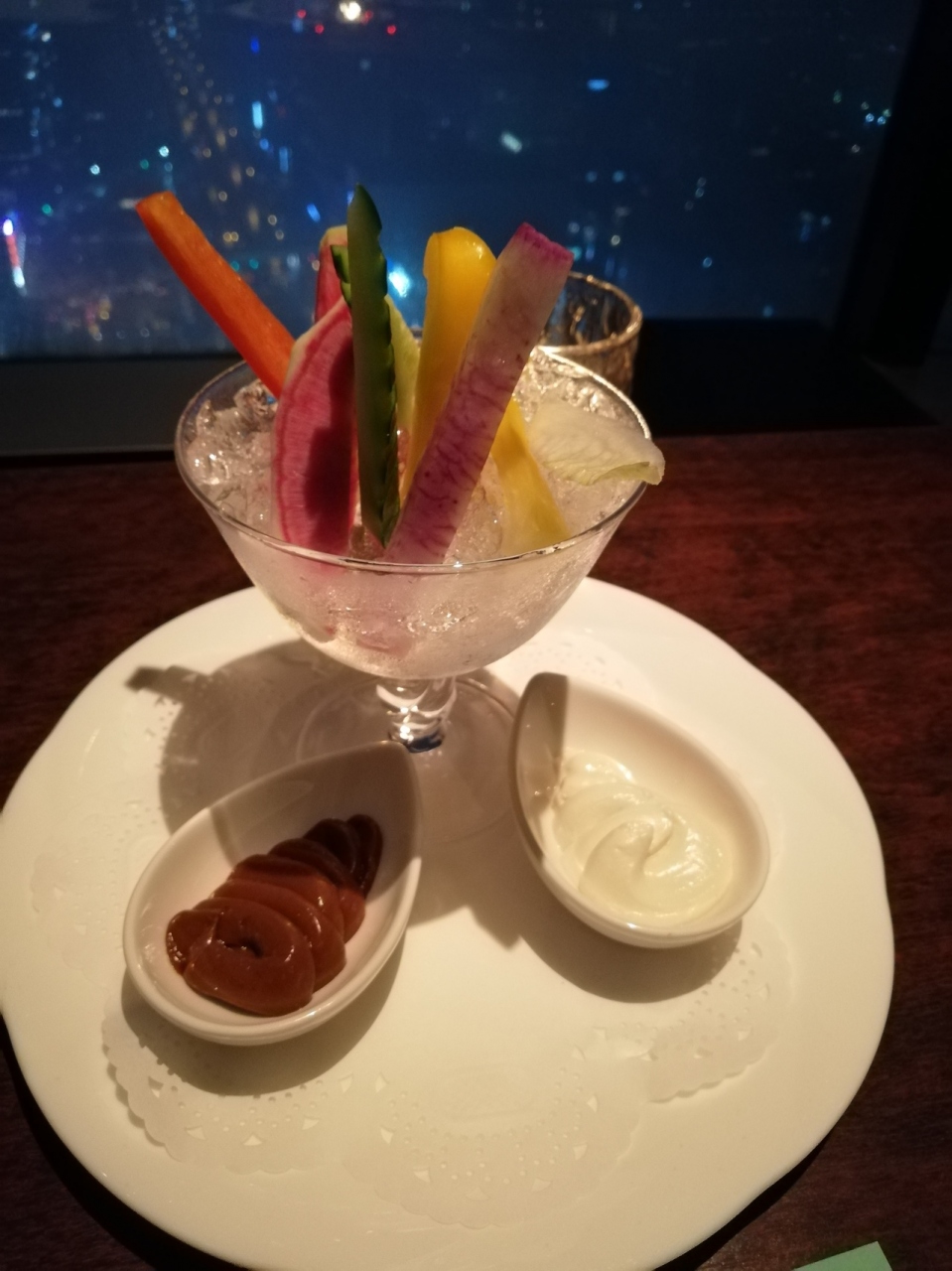 私たちはプレミアムモルツとおつまみはサーモンと野菜スティックを注文しました。