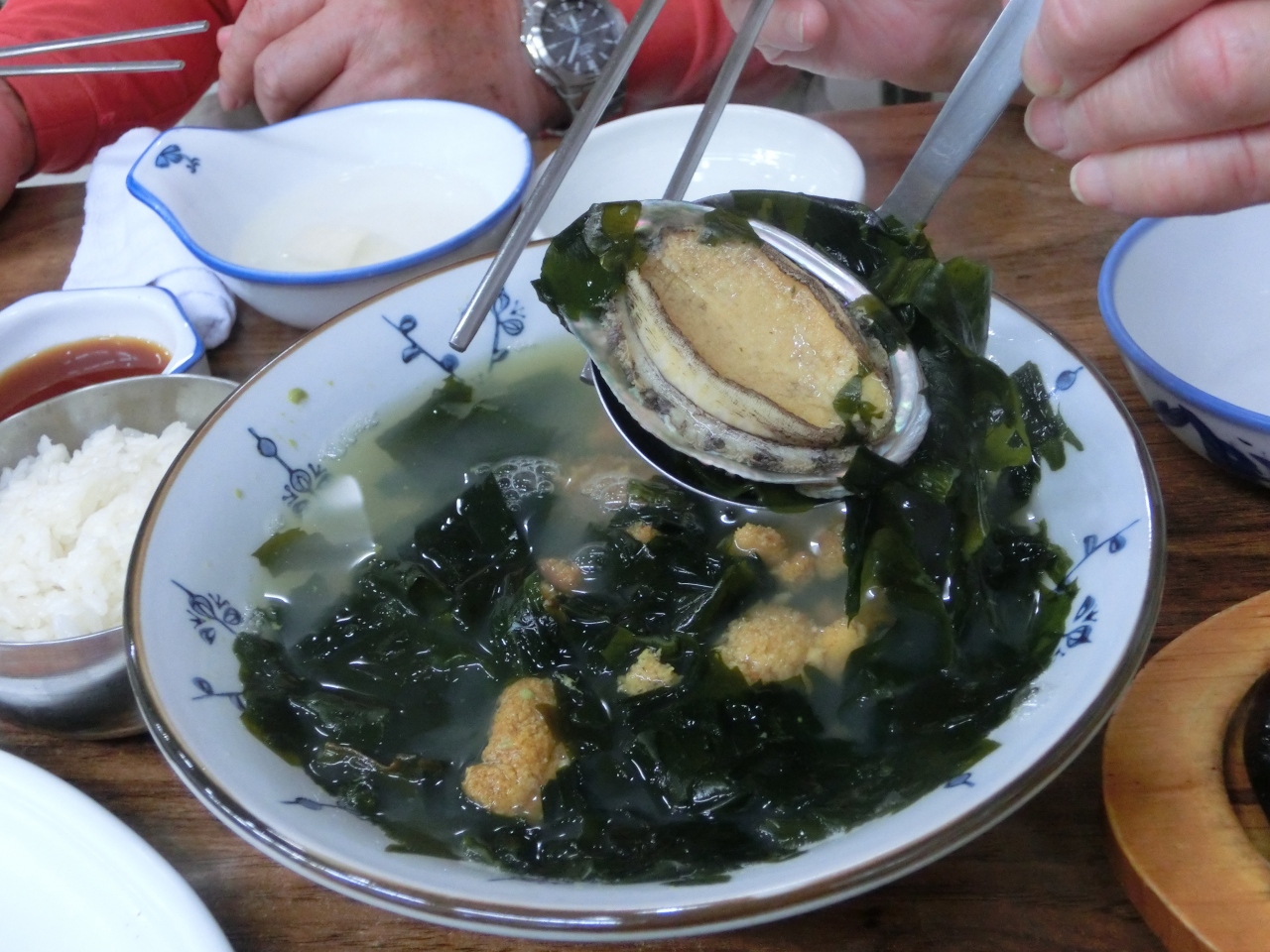 あわび、うにのスープ、あまだいの塩焼き、おかゆ どれも美味しいです。