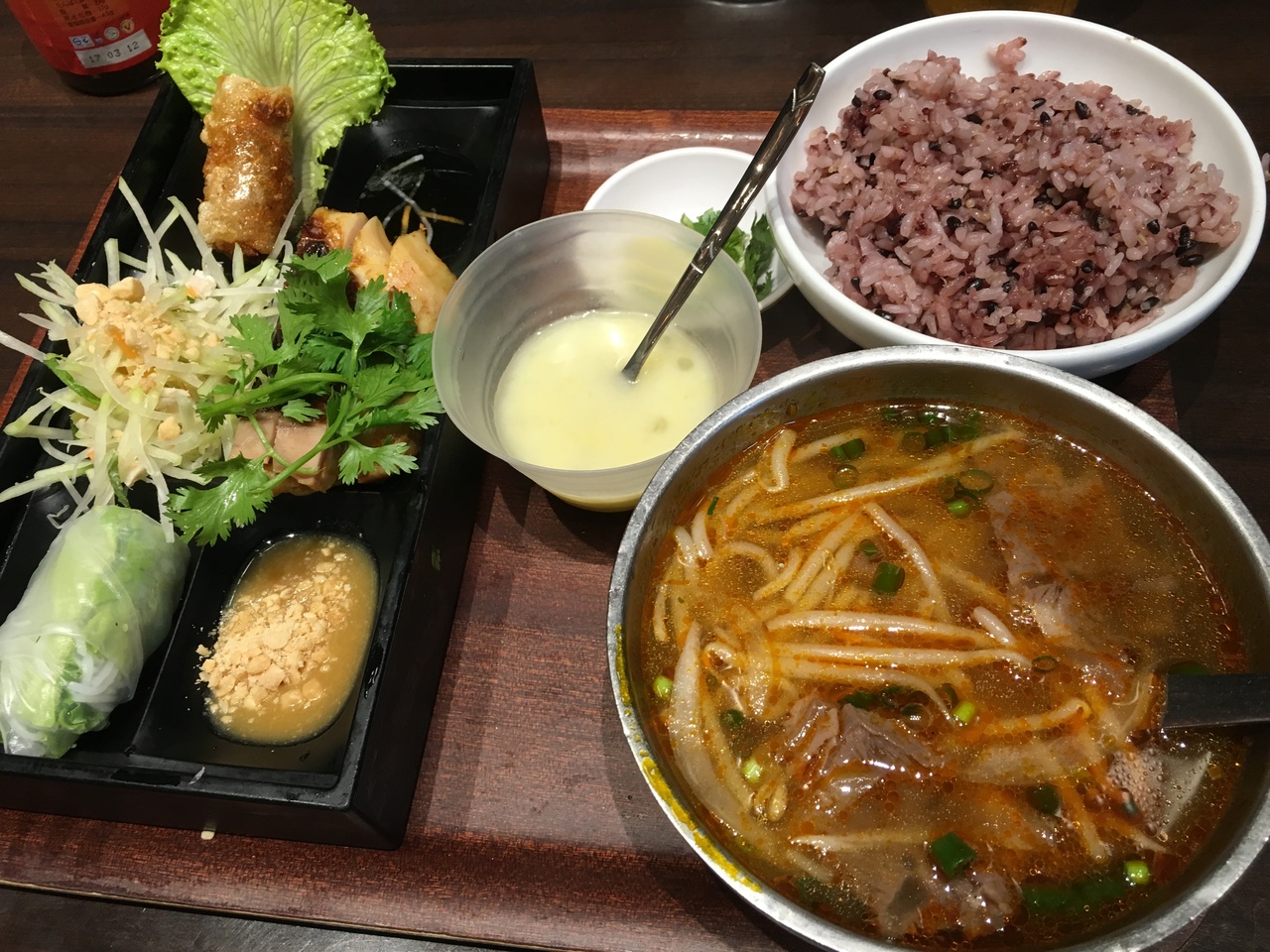 日曜日の夕方18時頃、訪問。席は8割方埋まっていて、並び席に案内される。メニューはセットを注文し、私はバインセオとミニフォーのセット。一緒に行った友人は何種類ものおかずとフォーがついたセットを注文。フォーもそれぞれ4種類の中から選べ、私は牛肉のフォー、友人は辛いフォーを頼む。1,500円程で味もよく、お腹も満たされたので有楽町でベトナムを食べるならこちらはオススメです。