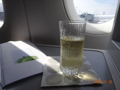 離陸前の飲み物はシャンパンをいただきました。グラスが素敵です。iitt...
