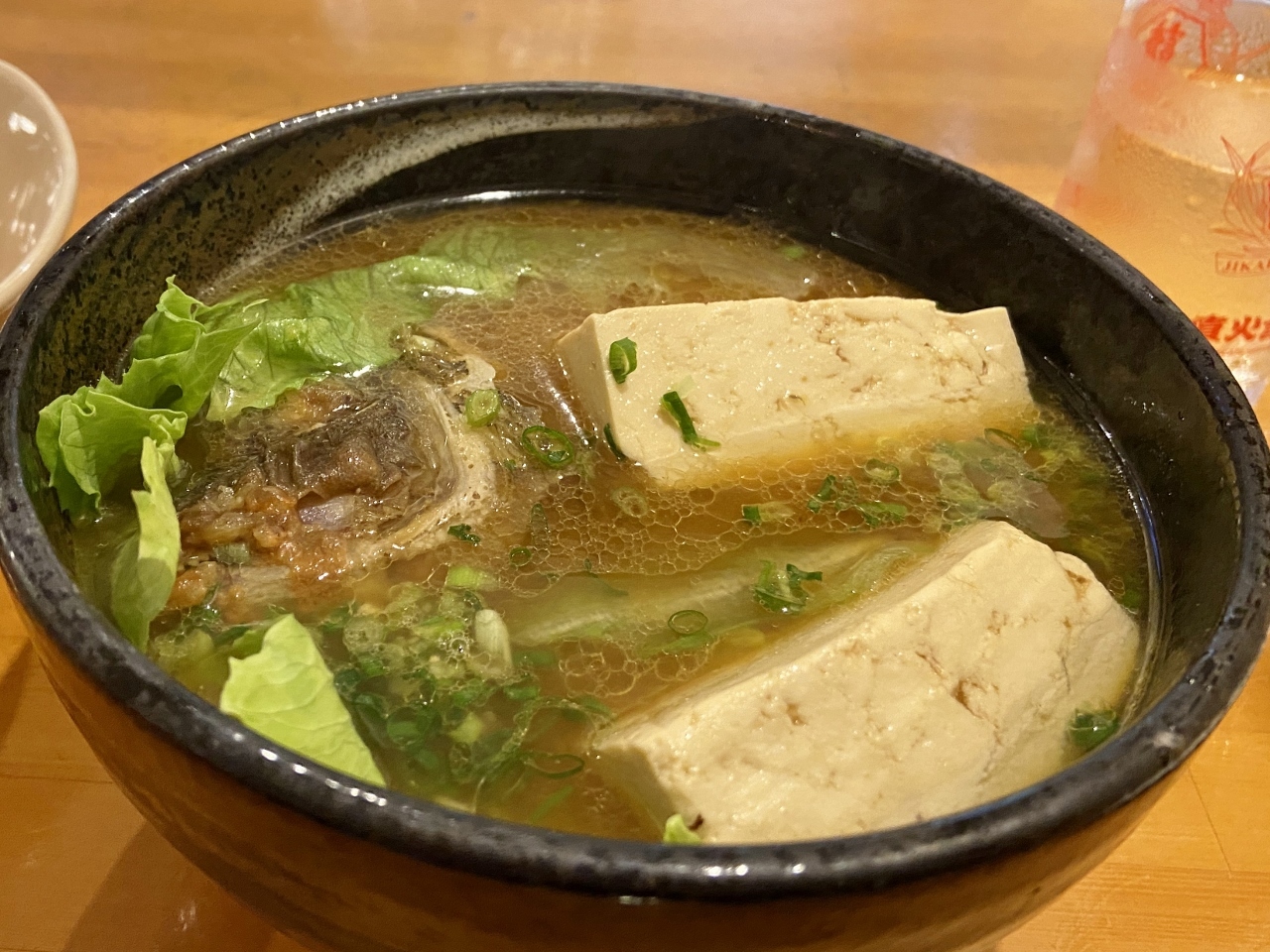 魚汁は大きなどんぶりに入ってきて、ミーバイだとかハタ科の魚、コクがあって美味しい。