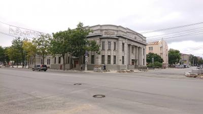 サハリン州立美術館は、ユジノサハリンスク駅から北に歩いてすぐの所にあります。北に向かって旧三越ビルや日本時代の橋へ向かう途中にありました。元は旧北海道拓殖銀行 豊原支店の建物であり、樺太時代からソ連を経て現在はロシアのサハリン州立美術館として日本時代から残る数少ない建物の1つであります。