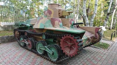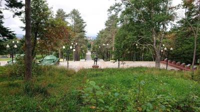 奥の旧樺太神社参道では今も神社の参道のように木に囲まれた細い参道が階段上に通っており、昔の樺太神社の写真と比べると一目瞭然です。参道を進むとソビエト連邦時代の戦車が立ち並んでいます。後ろを振り返ると豊原の街並みが見えるようになっています。- 旅行時期