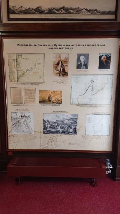 サハリン州立美術館は、旧日本領時代の樺太庁博物館を引き継ぎ、現在も博物館として使われております。展示内容は、多岐に渡り樺太と千島列島の歴史文化や生態系など歴史と動植物などの展示も展示されております。北海道にいないトナカイ、クズリもありました。アイヌ文化、ニブフ文化、ウィルタの文化に加え、明治維新以前から樺太に住んでいた和人(日本人)に関する展示もあります。旧樺太時代の樺太が日本だった頃の展示も多く、北緯50度線の日露国境標石なども見所です。