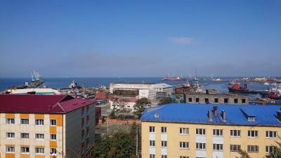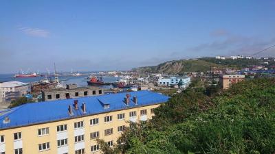 亜庭湾と西能登路半島がくっきり望めました。眼下に広がるユジノサハリンスクの景色も