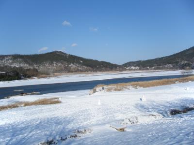 河回村の周囲を流れる、洛東江です。渡し船で、向こう岸まで渡れるようです...