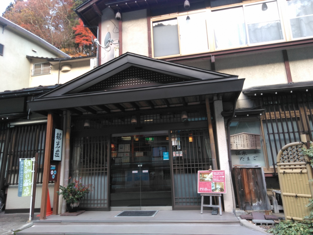 玄関の横にも温泉が垂れ流しになっており、こちらの旅館は元湯だそうです。