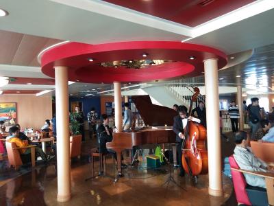 でも、広いレストルームにはテレビもありますし、ギターやゲームや本などいっぱい。また、ロビーの前にはバーカウンターもあります。