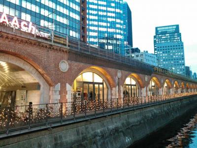 秋葉原駅と御茶ノ水駅のちょうど間に位置する神田川にかかる万世橋の、神田川沿いには、旧中央線の遺構があり、赤レンガのアーチが残り、非常に印象的な風景が残ります。