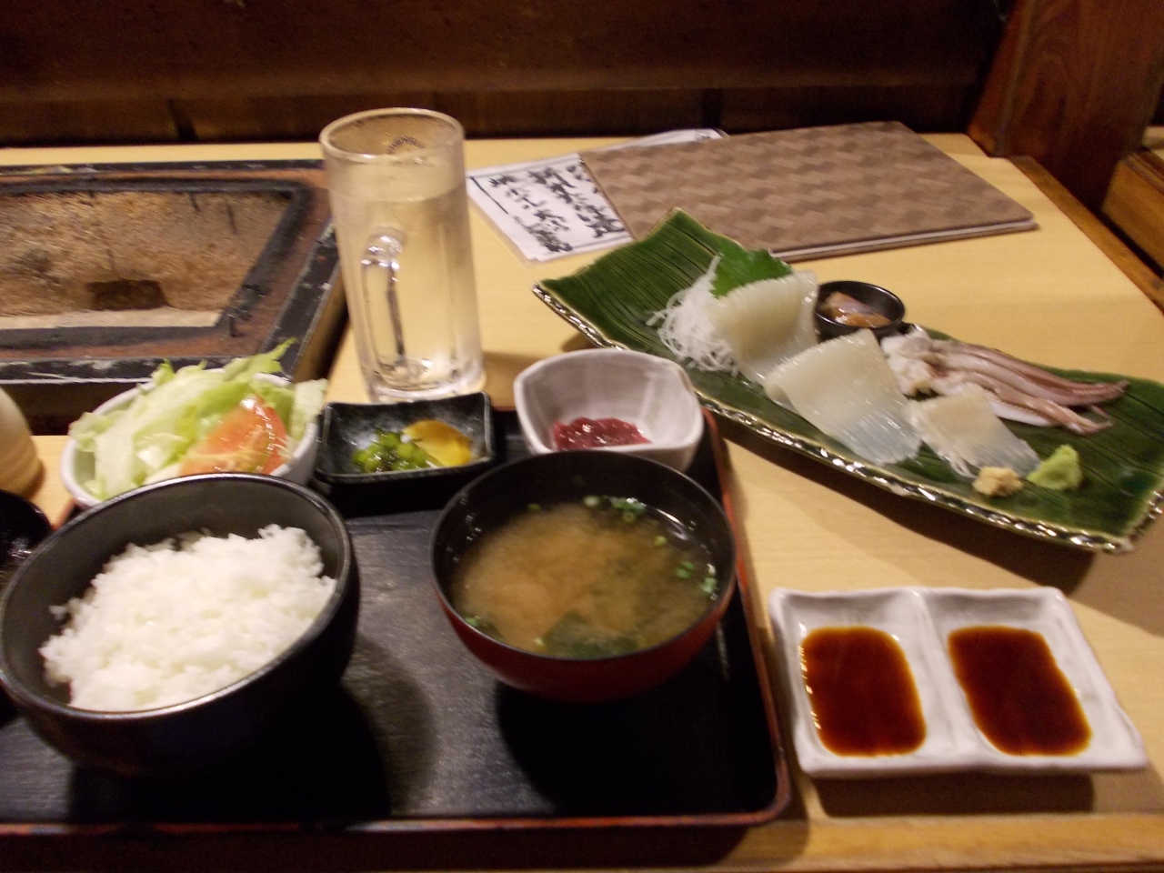 炭焼きのお店ですが、朝どれのイカ刺しが目に留まり、