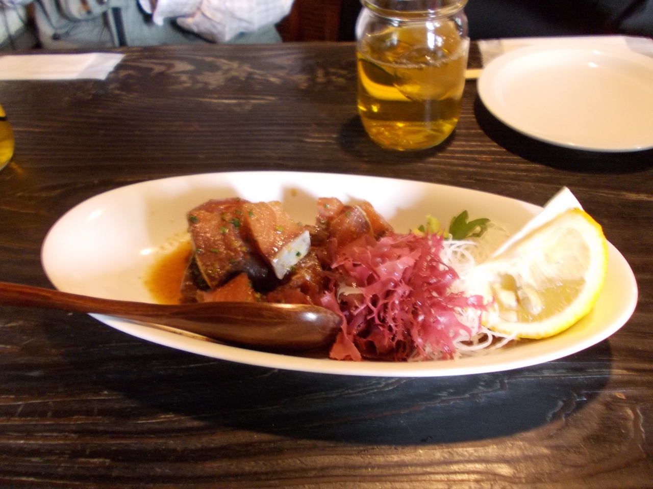この時はぶりのりゅうきゅう、シーザーサラダ、鶏のから揚げ、ふわふわのオムライスを数人でシェアしていただきました。