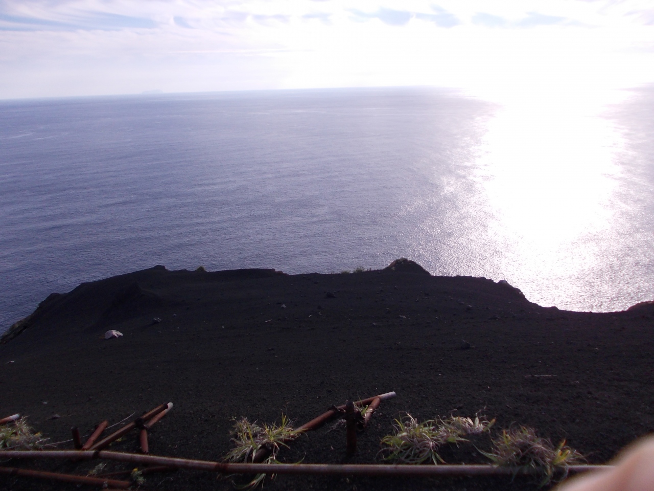 そこから10分ほど、歩いて坂道を上り、小さな尾根を越えて視界が海で広がるところで、一気に黒い砂の砂丘がどーんと見えます。