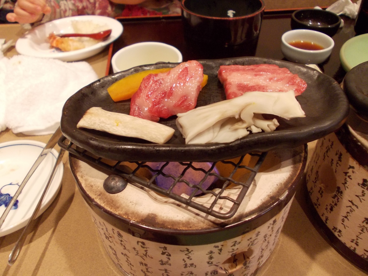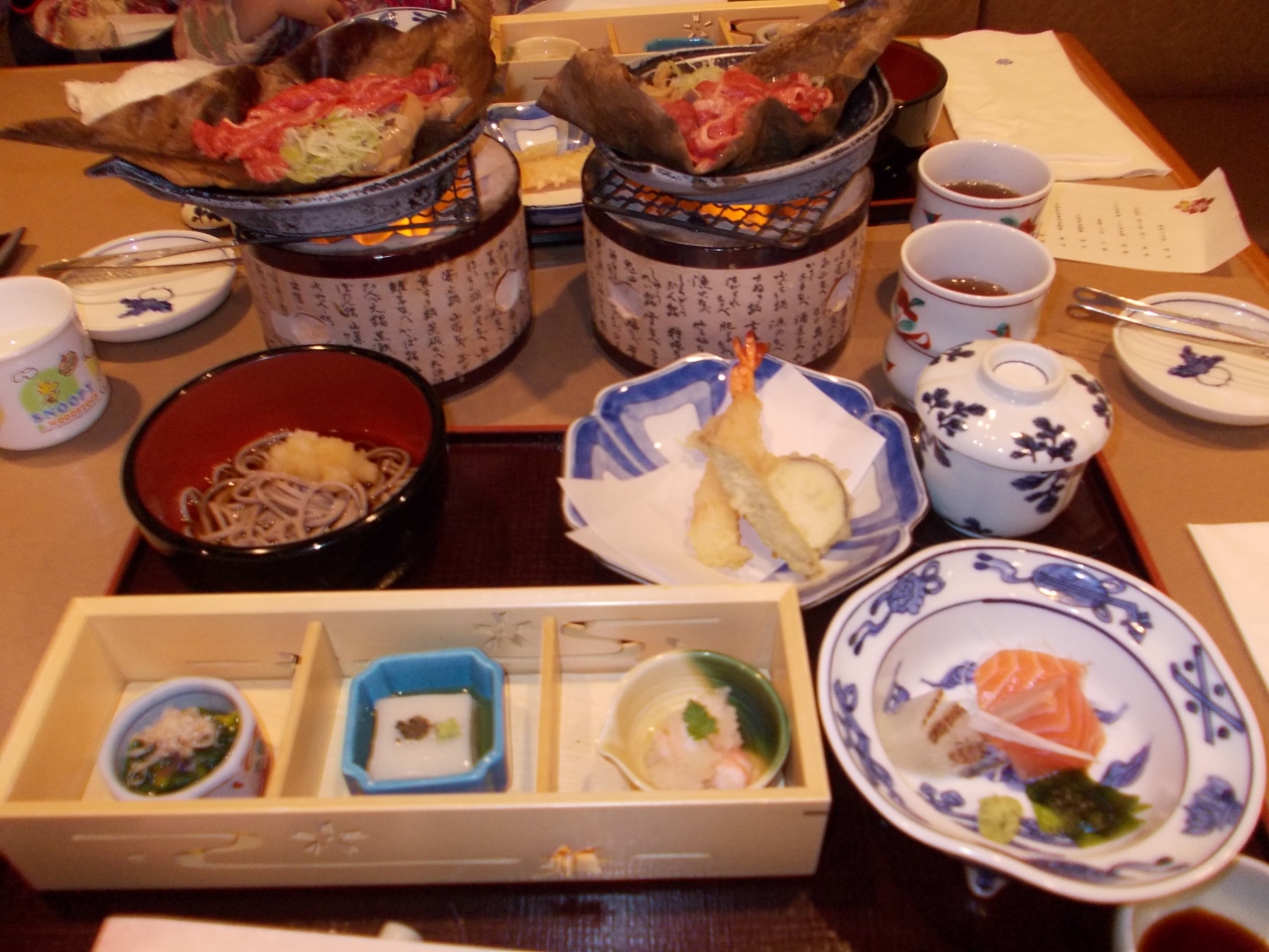 天ぷら、お蕎麦、茶わん蒸しはおいしく、これに、飛騨牛の朴葉焼き、石焼が付きます。