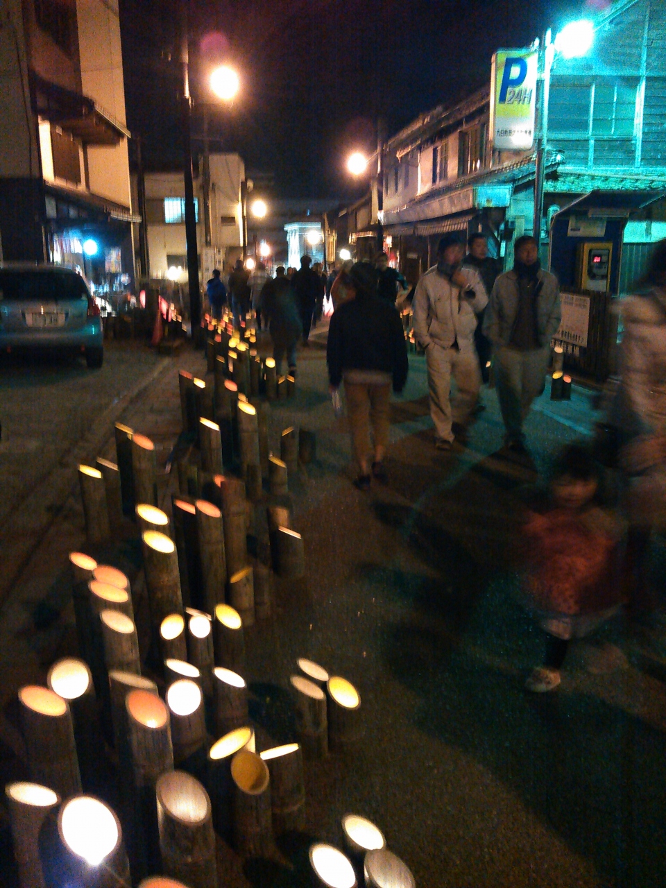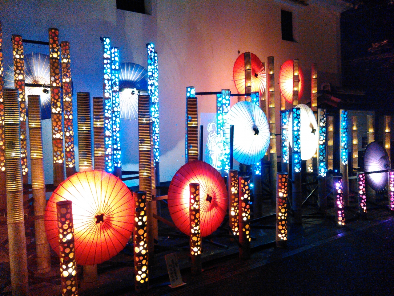 豊前街道を中心に、竹を切った灯篭や和傘に灯りをともしたりといった、
