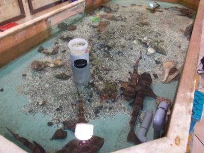 その名前のとおり、マンボウが売りで、本館の前にある露店ではマンボウの串焼きを売っていたり、中では切り身も売っています。