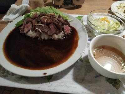 ローストビーフ丼やステーキカレー、タンドリーチキンをいただきました。