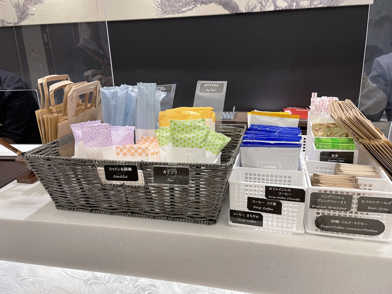 アメニティは、4月から法律でプラスチック新法の施行に伴い客室内の提供はなく、フロントでペーパーバッグを渡され、1階アメニティバーから必要な分だけ持参する形式でした。