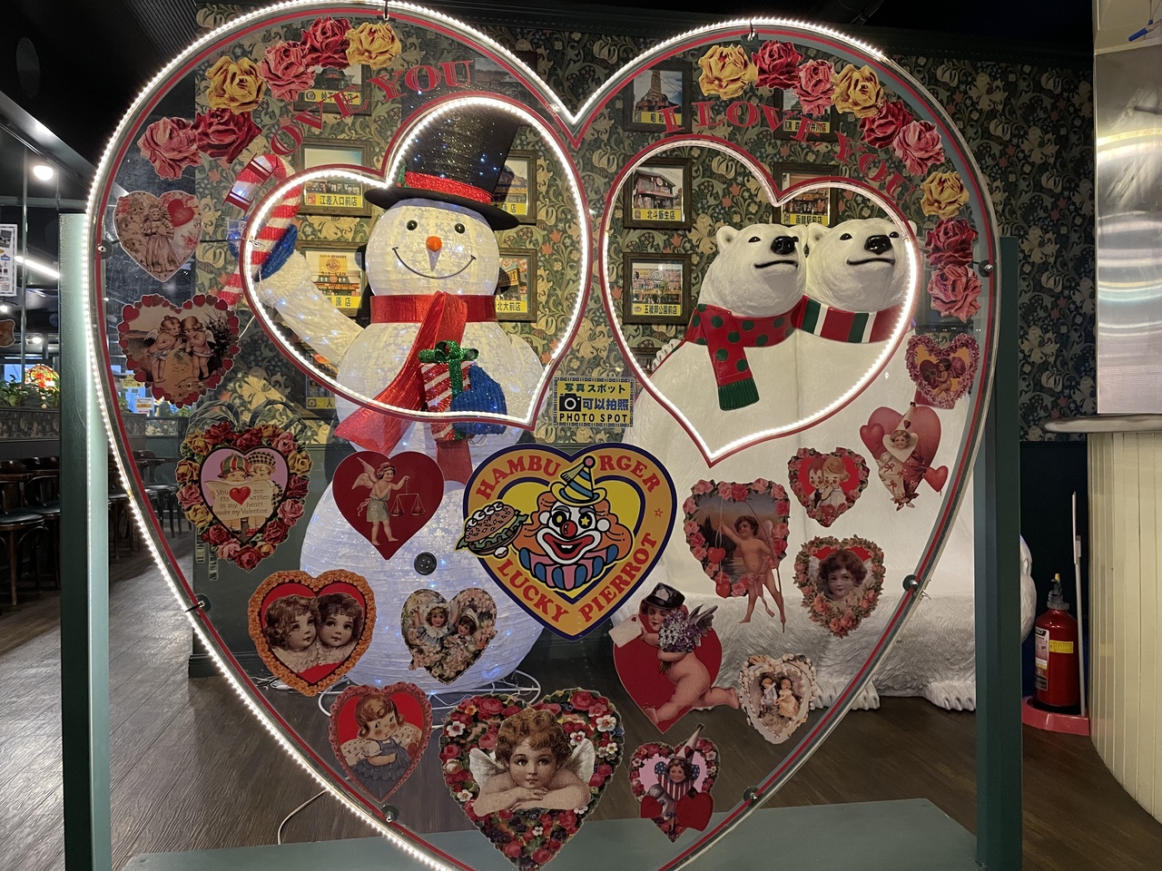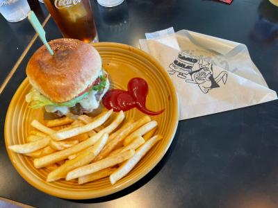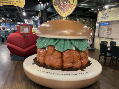 広い店内に入ると大きなハンバーガーがお出迎えフォトスポットもあり明るく賑やかでオールドアメリカンな感じです。