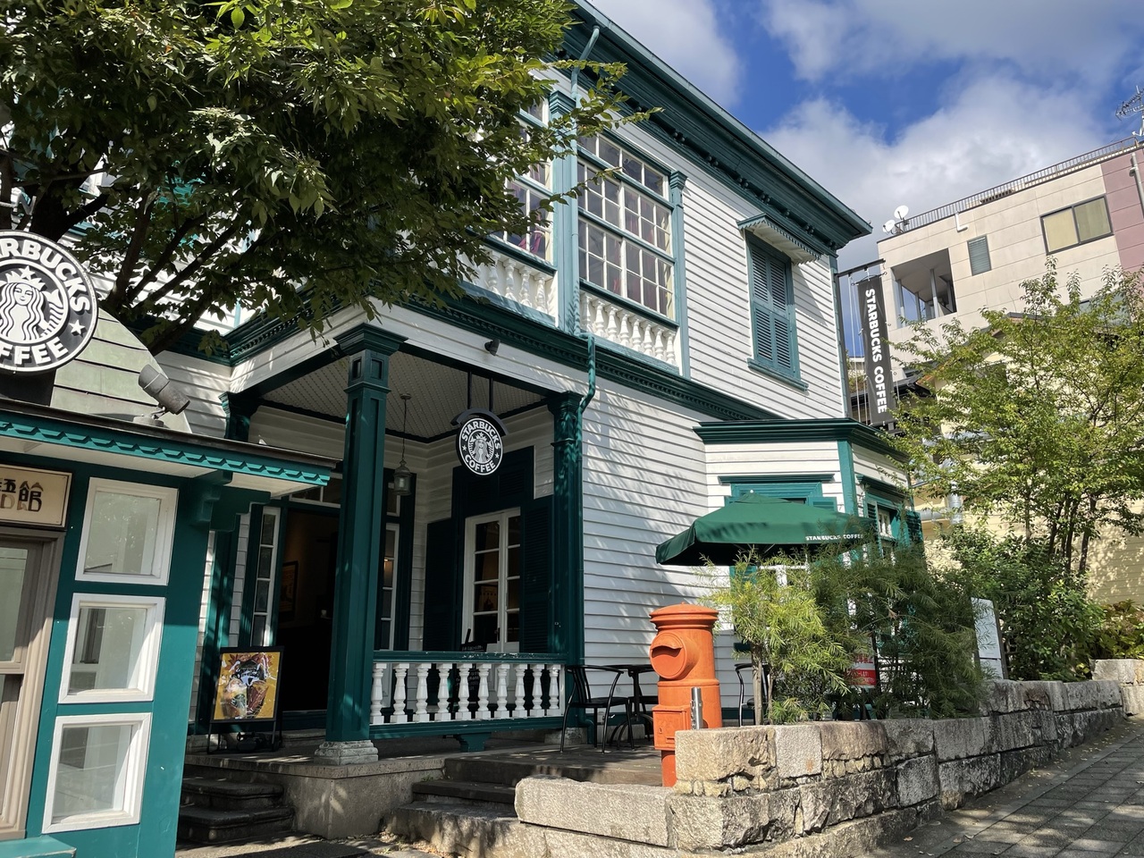 白とグリーンで爽やかな色合いのお洒落な洋館で
