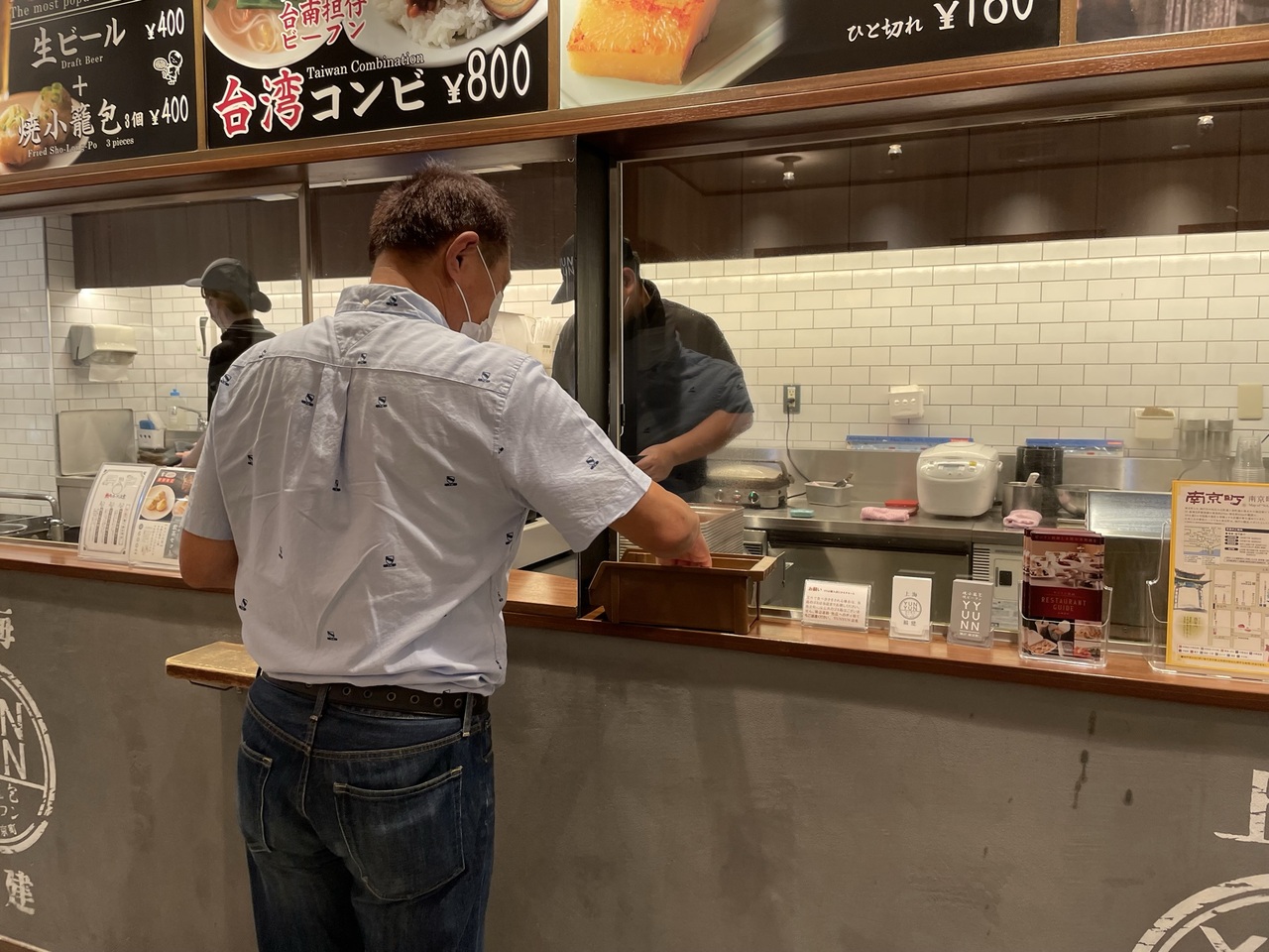 午後1時半頃でしたが、お店の前には人が並び店内は満席でした。ウェイティングシートに名前と人数を記入し、待ち時間を確認すると1時間位。小さい子供が居るので、「順番がきたらお呼びするので車の中でお待ち下さい」との事でした。