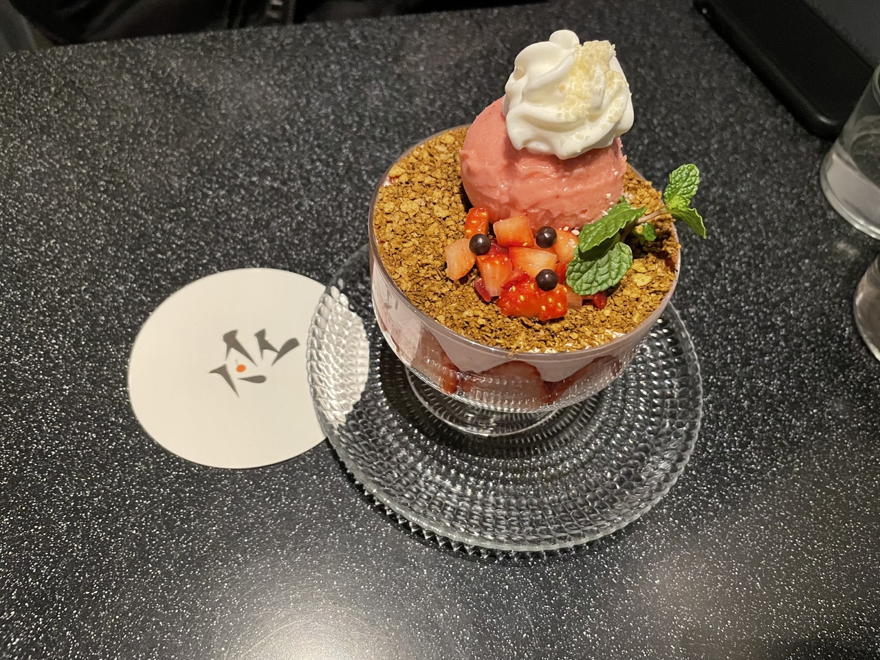 19時過ぎと早い時間帯だったのですぐに入店できました。パフェと言うと甘いイメージですが、こちらのパフェは、生姜を効かせたアールグレイや甘酸っぱいカシスムース、りんごのジュレなど使った甘さ控えめの美味しい大人パフェでした。- 旅行時期