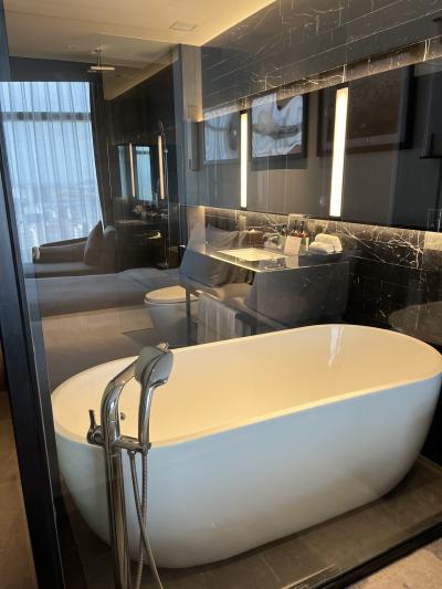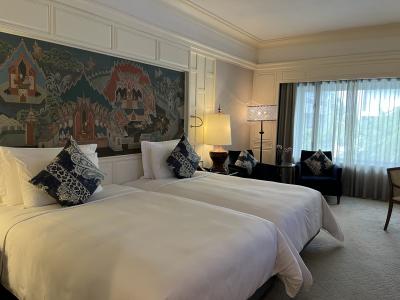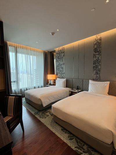 ロビーのゴージャスさはバンコクでもトップクラス。極上の休日が過ごせます。一方、客室は明るく広々しており、落ち着いた雰囲気。最近では珍しくお持ち帰りできるアメニティも嬉しいです。ドラム式洗濯機が付いてたのも暑いバンコクではとても助かりました。