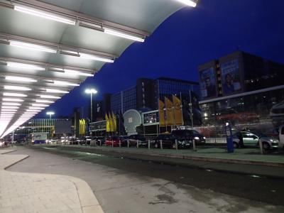 フランクフルトーマイン国際空港到着。7:30amまだ日の出前。向かい側...