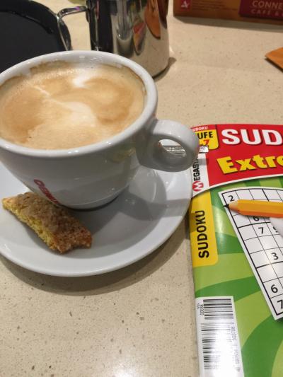 ICは9:42発なので約2時間、カフェで一休み。売店でSudoku購入...