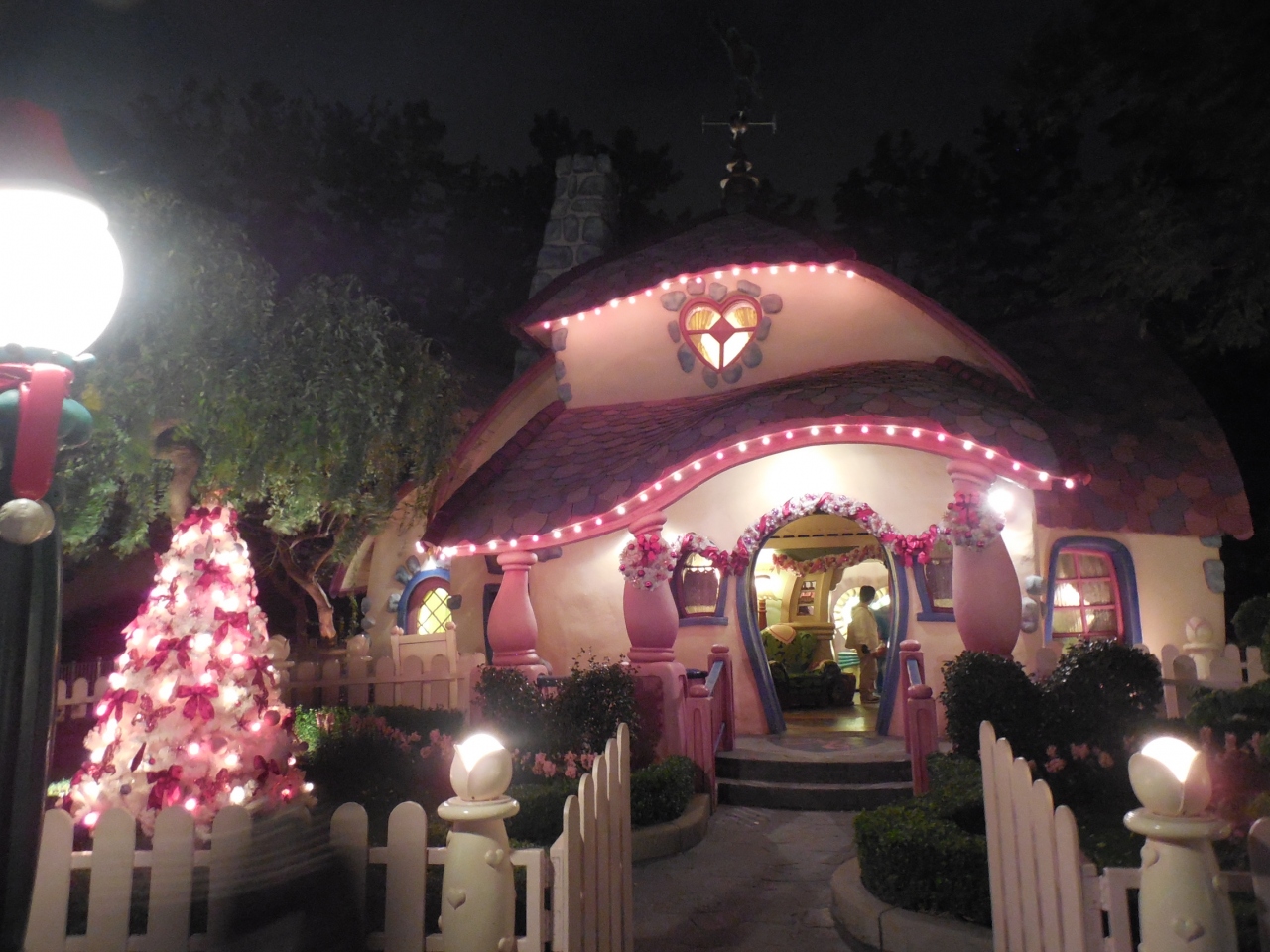 ミニーの家は、パープル・ピンクがベースになった愛らしいイメージ
