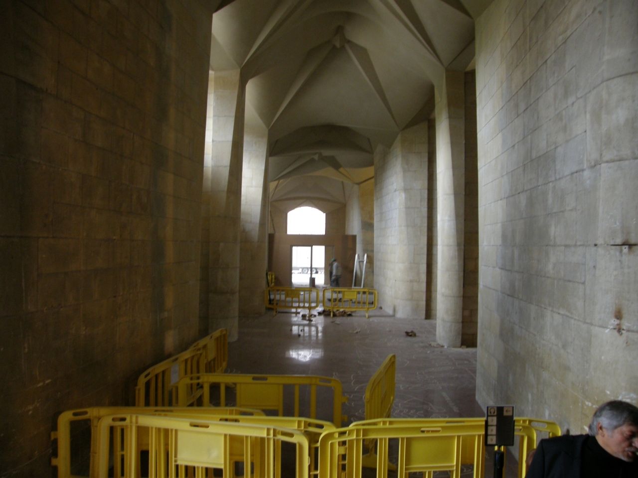 当時はまだ中は工事の資材が置いてあって、上の方では職人さんが工事をしていて工具の火花が時々見えていました。