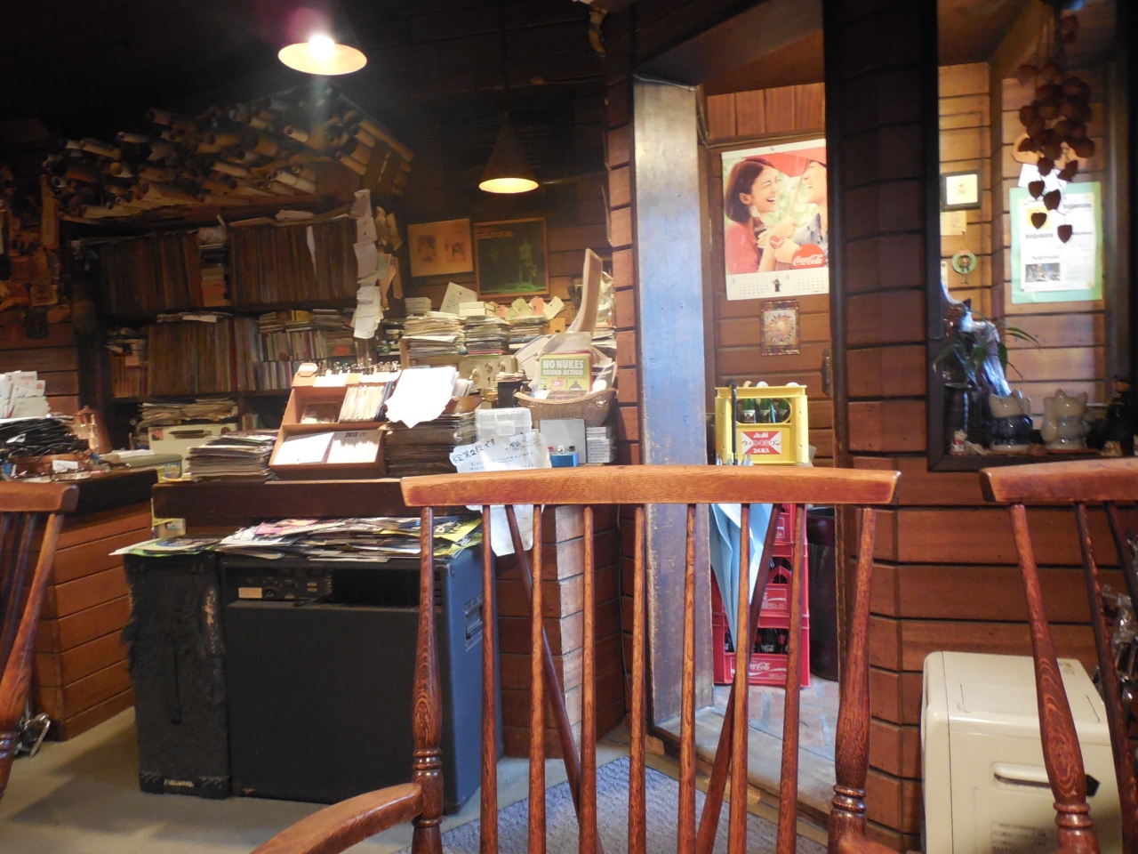 中に入ると古いレコードやCDがところ狭しとあって、奥に大きなスピーカーがあります。