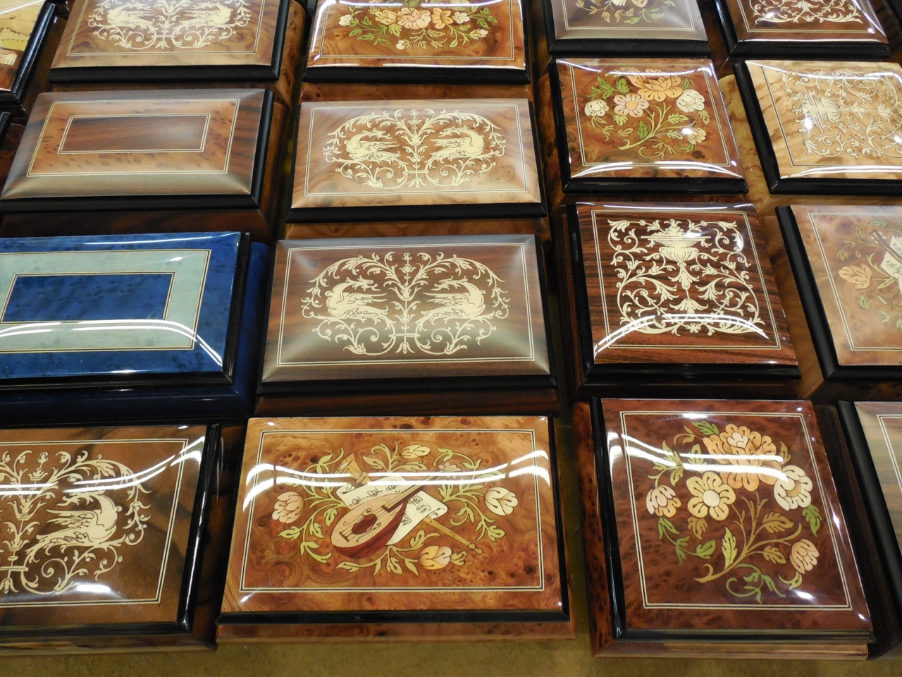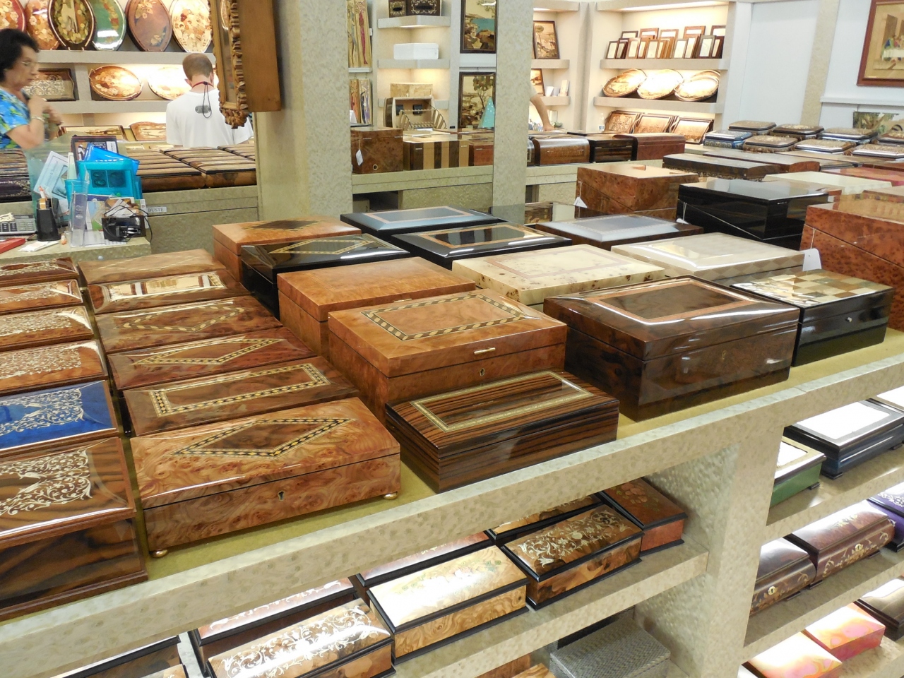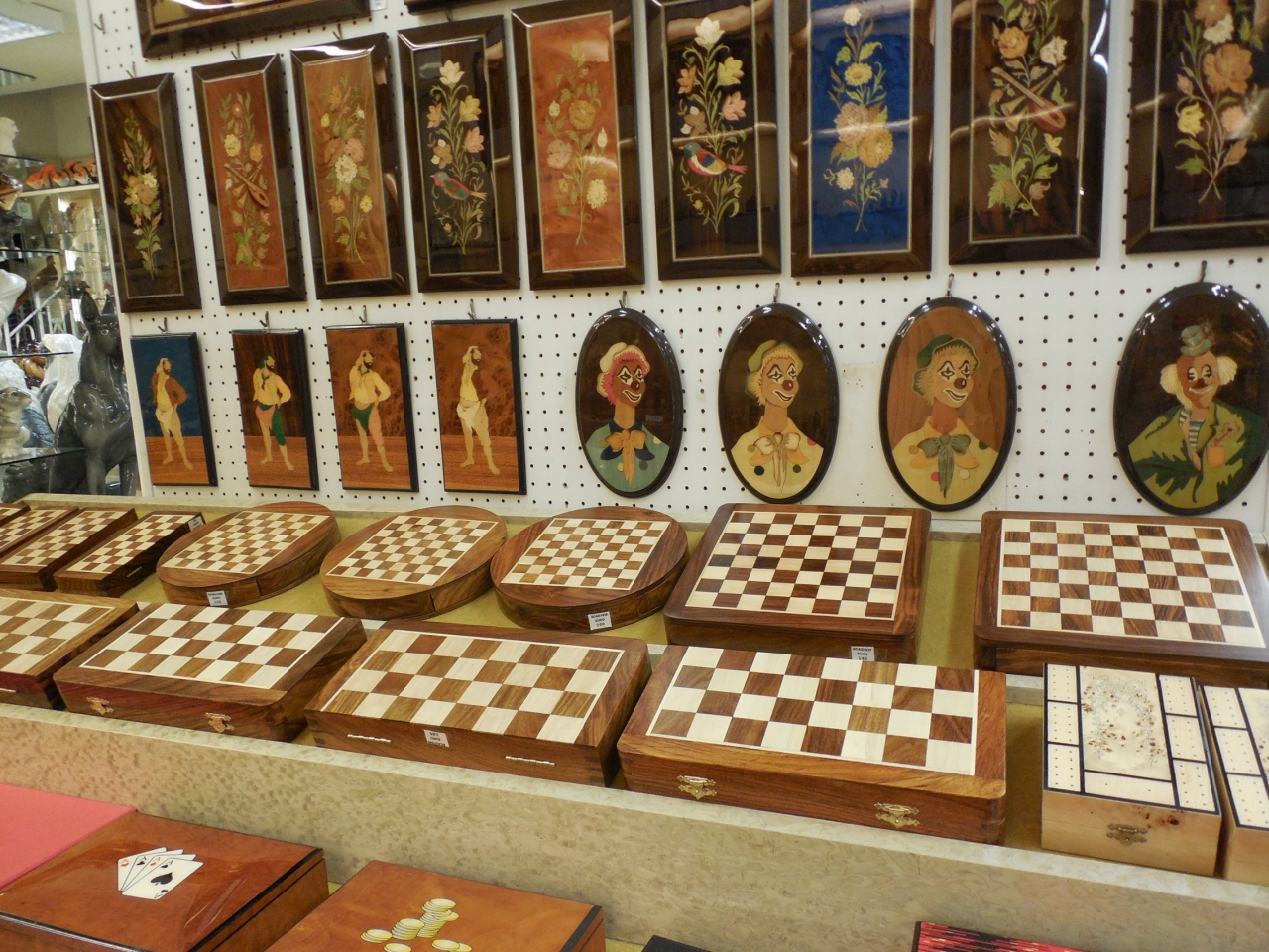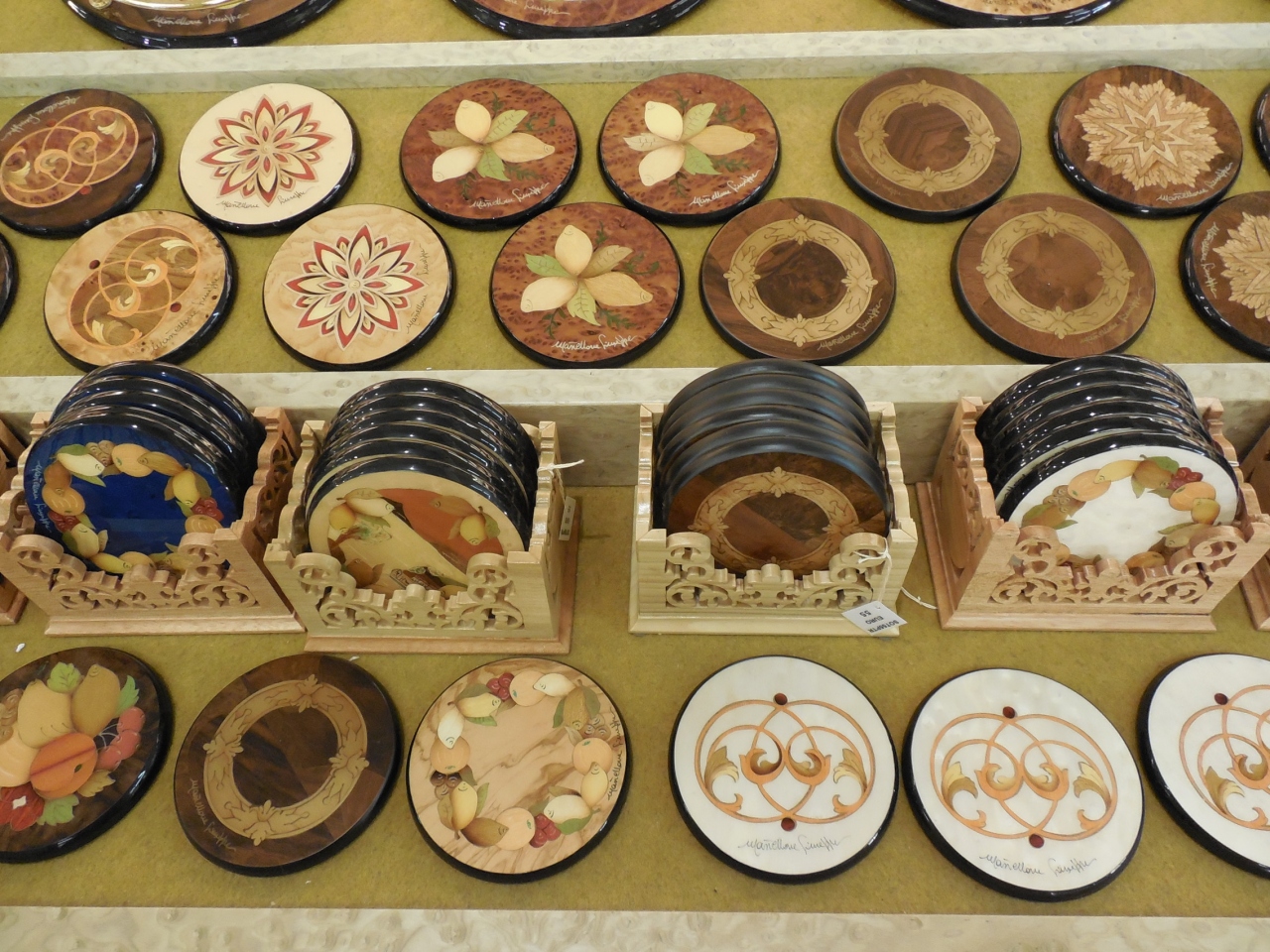 店内は広く、小さな小箱からコースター、オルゴール、ゲーム盤、大きなものはテーブル、、、と種類も豊富で、見事なな寄木の製品が並んでいました。