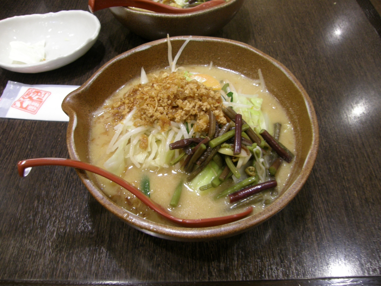 信州味噌の野菜ラーメンには山菜が入っていました。