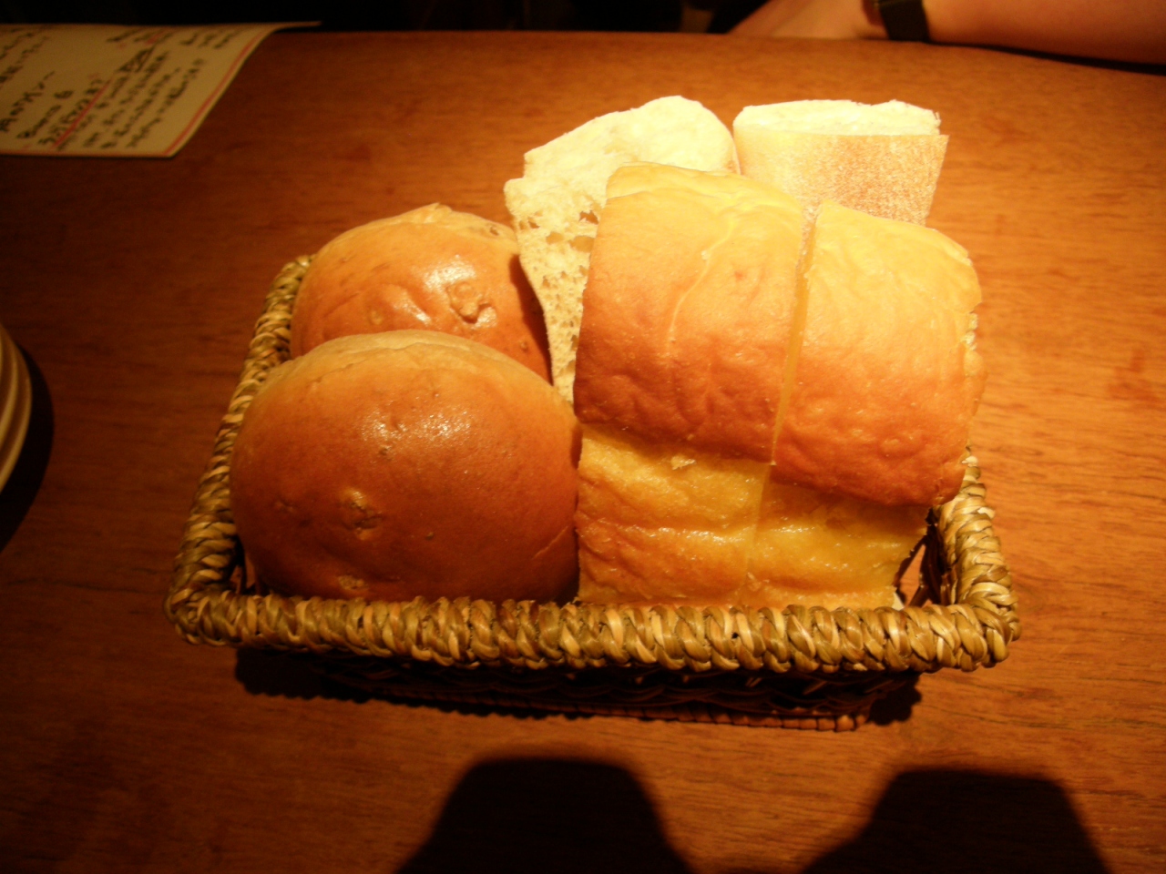 まずお通しで出てきたパンが絶品に美味しく、もうここからわくわく。。