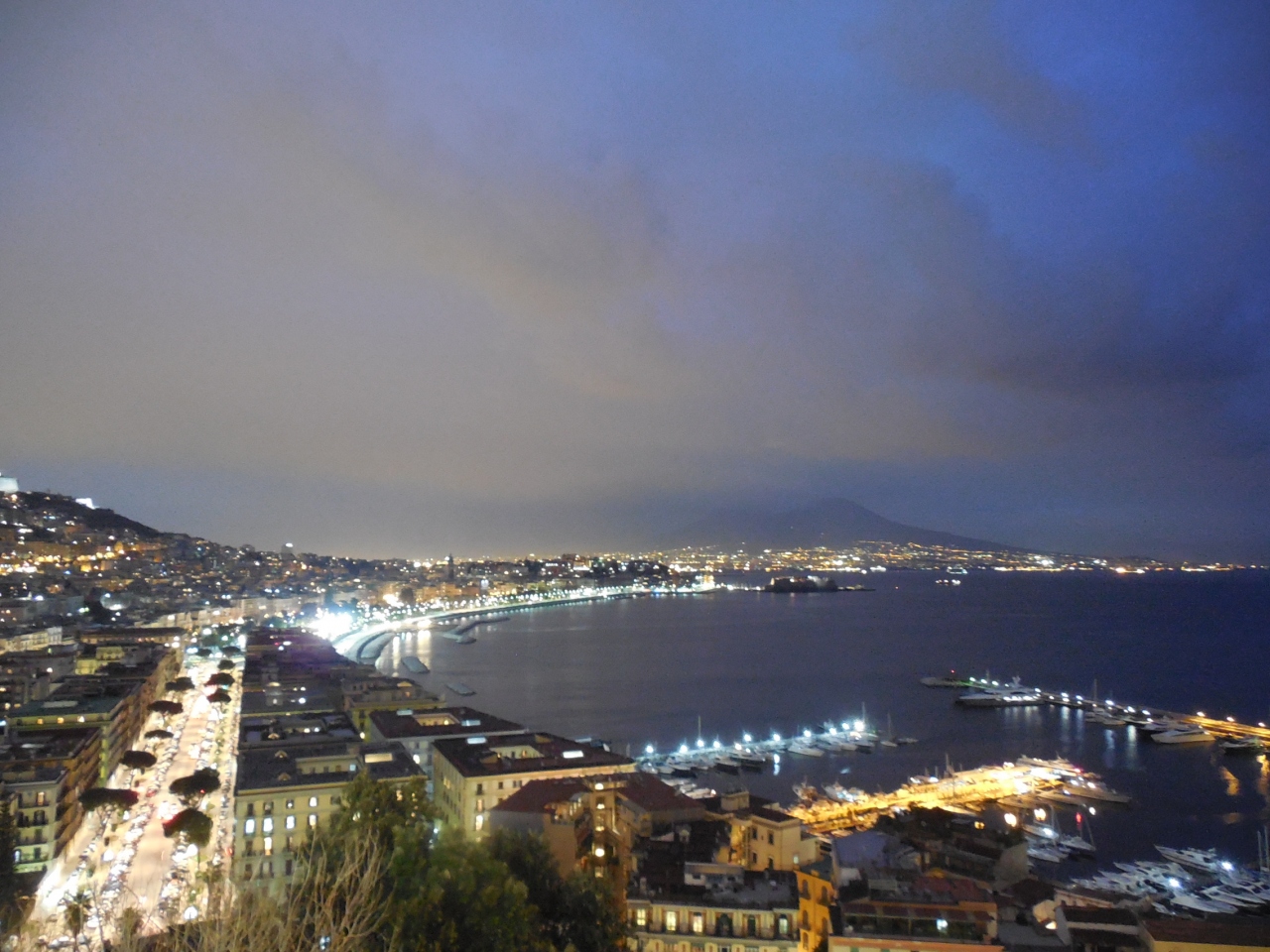 陽が落ちる少し前位に着いて、少しづつ暗くなって来るのをわくわくしながら見てましたが、私達が行った日は曇りで、夜景がきれいになった頃にベスヴィオが半分隠れてしまいました。残念!- 旅行時期