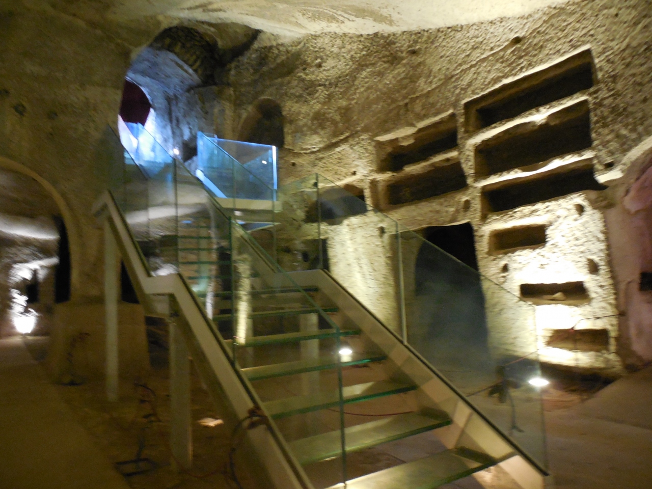 回廊の奥の階段を下りるとギリシア・ローマ時代の遺跡があり、保存状態もよいそうです。