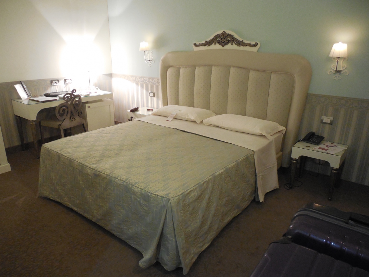 部屋は広く、Lサイズのトランクを余裕で広げられました。窓はありましたが狭い中庭側で、反対側の壁しか見えなかったのが少々残念ですが、あまり気になりませんでした。
