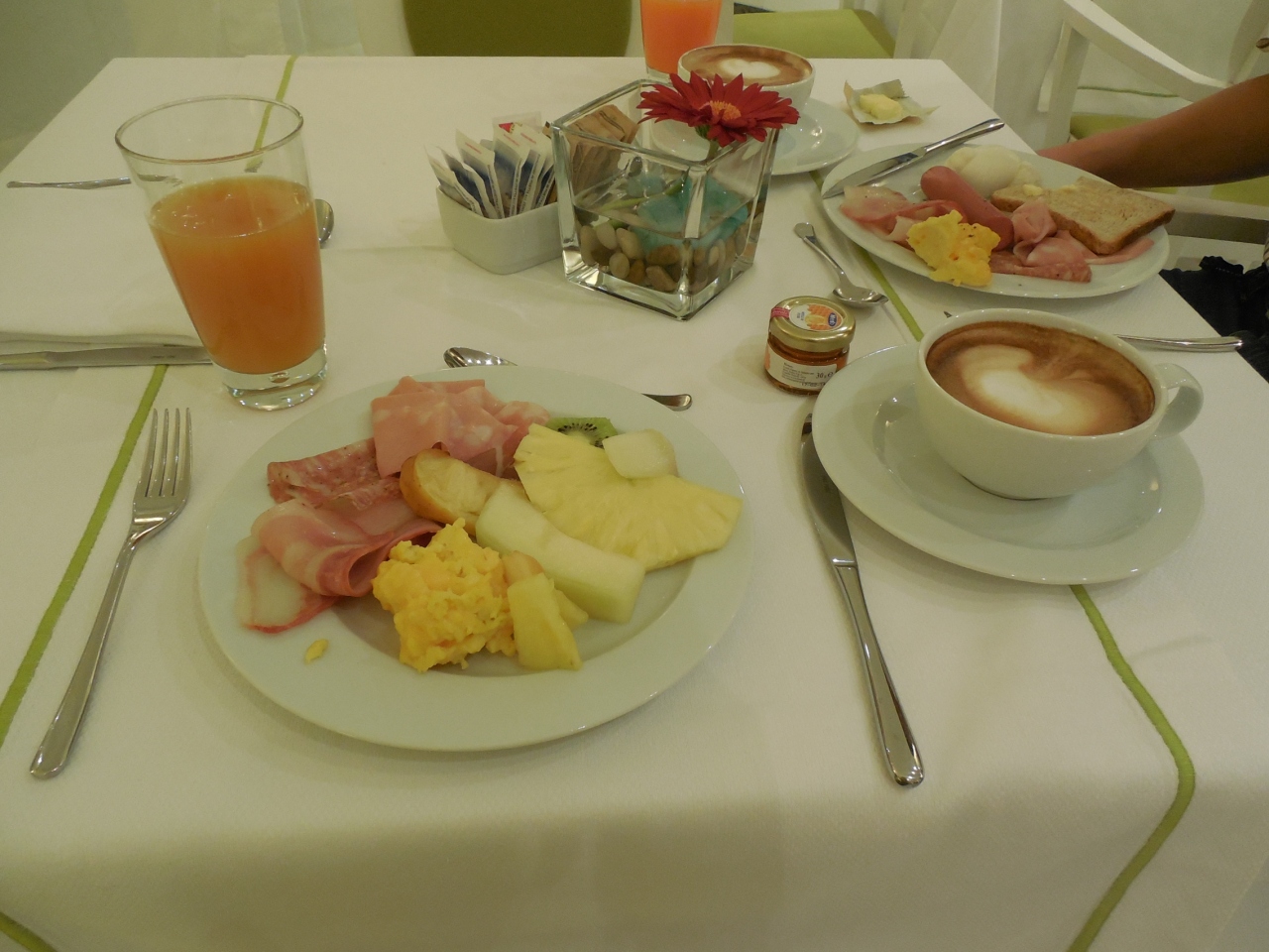 朝食もフルーツにハム、チーズと種類もあり、美味しかったです。