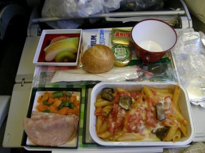 成田−ローマ間で乗った B777-200ER は、前の席との間隔がとても狭くて「え、これに10何時間も乗るの?」と思ってしまいましたが、まぁ乗ってると結構慣れてくるものですね。