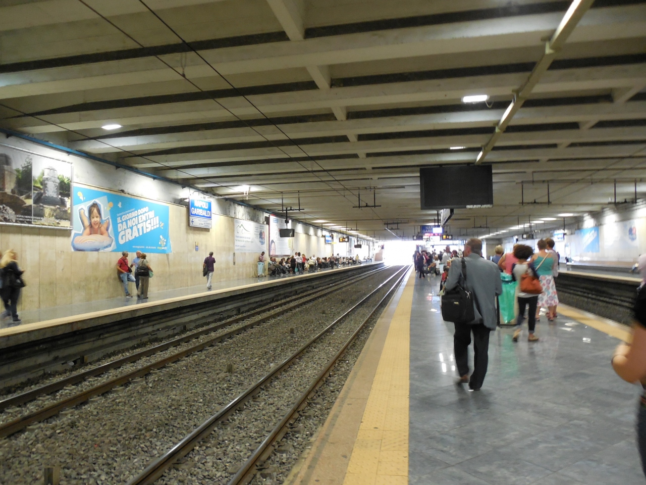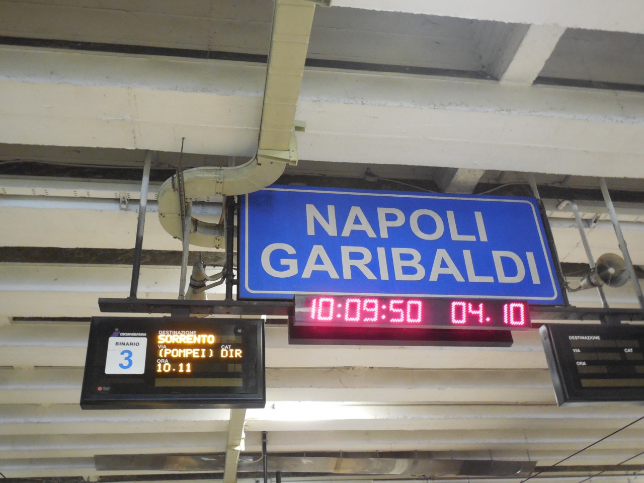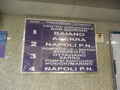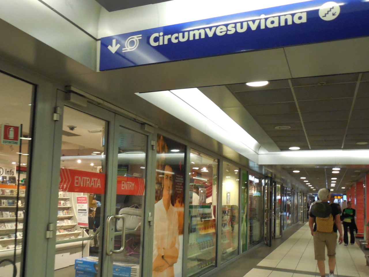 ナポリ中央駅の構内の案内板に沿って地下へ降りて、地下街を歩いた一番奥がベスビオ周遊鉄道のナポリ・ガリバリディ駅です。