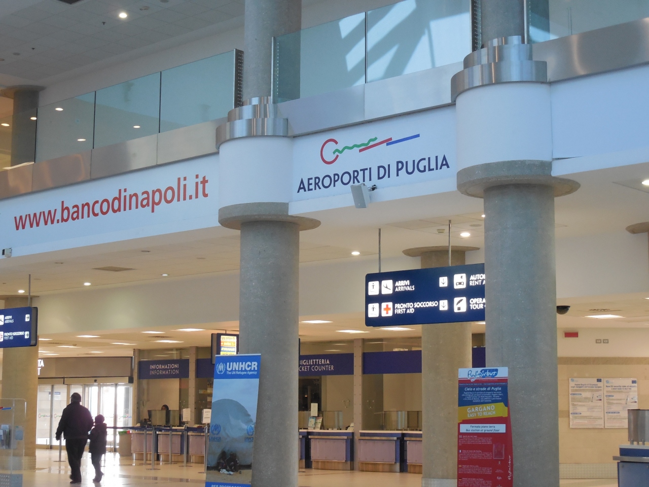 空港内にはあちこちにAERPORTI Di PUGLIA の文字とデザインがおしゃれな感じでした。