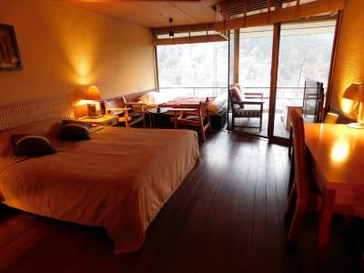 1階の和室は広々として、お風呂が2つついていました。1つは露天風呂。3階の洋室もいい雰囲気です。露天風呂のお湯の注ぎ口が魚の形をしていてそれが妙にいい感じで気に入ってしまいました。部屋の雰囲気と露天風呂が最高です。露天風呂からの景色はとてもよい眺めでゆったりとくつろげました。また行きたいです。- 旅行時期