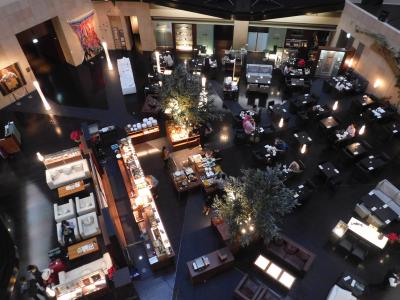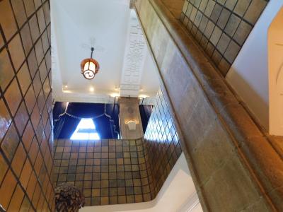 ホテル内はアートで溢れていました。三角おにぎりのような形のロビーから上を見上げたところは、ガウディのカサ・バトリョを彷彿とする形だと思います。