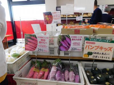 前日、宿へ戻るタクシーで運転手さんに「ここはいいよ~」とおススメされて気になり、行ってみました。日曜の朝早い時間で、アウトレットの入口は入場を待つ人の列。30分近く並んだでしょうか。アウトレットの中は、信玄餅はもちろん、桔梗屋のお菓子がずらり。どれも安くてお買い得。菓子類はもちろんなのですが、目を引かれたのは自社農場で作られた山梨産の新鮮な野菜達。初めてみた野菜もあり、買い出しみたいに両手に大きなレジ袋下げて戻ってきました。満足度はなまる!って感じでした。
