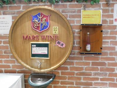勝沼ぶどう郷駅を出ると丘の上に「ぶどうの丘」が見えます。多少アップダウンがありますがぶどう畑を見ながら駅から歩ける距離です。料金を払い、タートヴァンという試飲用の金属の器を受け取って階段を下りて地下へ。そこは勝沼ワインの世界が広がっていました~