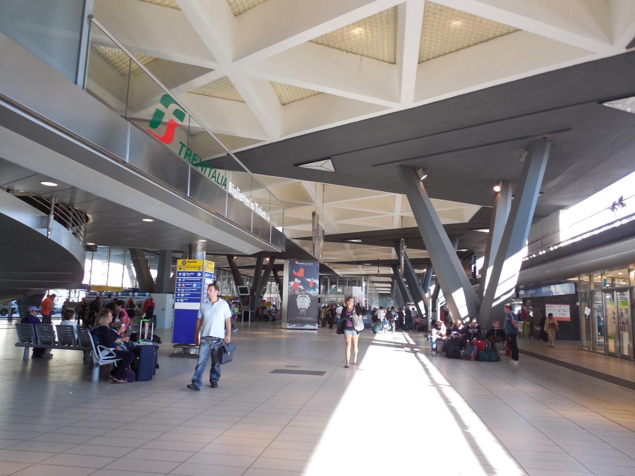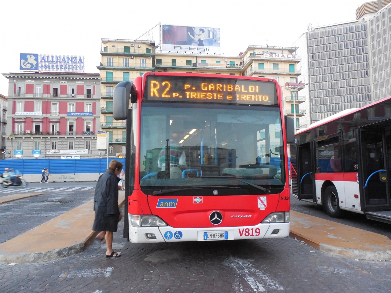 駅はボヴィオ広場(Piazza Bovio)に面しているのですが、この広場は多くのバスの路線が通る場所のようで、ここで降りてバスに乗換えたりしました。