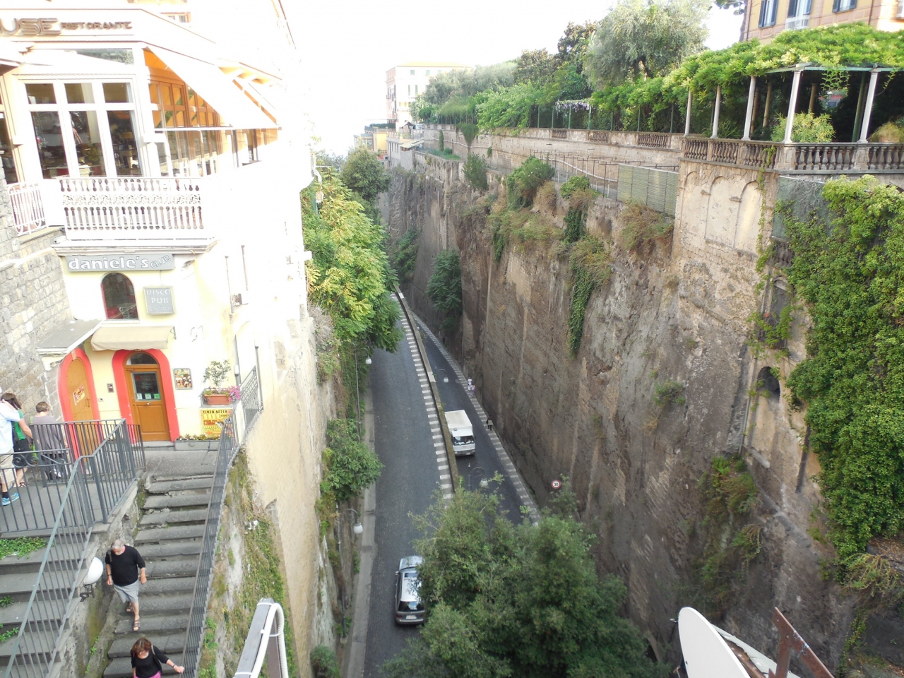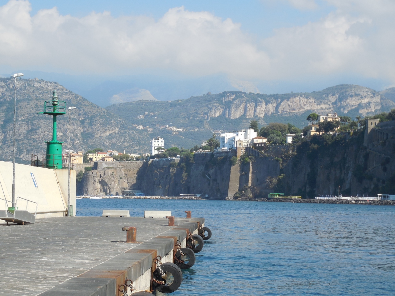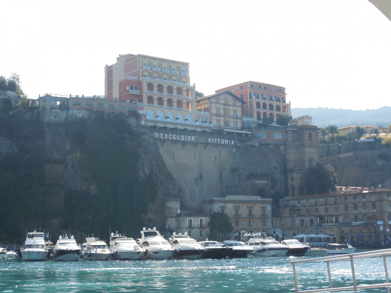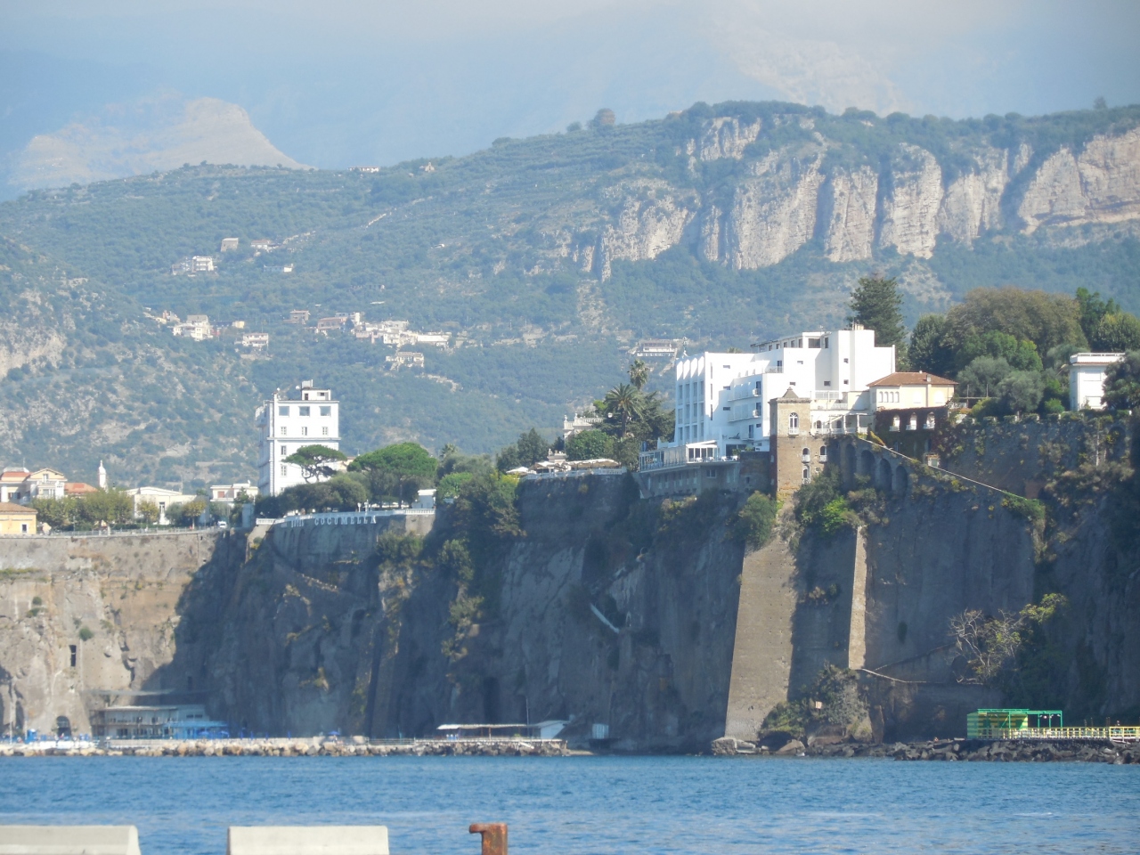 港側から見るとソレントの街は切り立った崖の上になり、その絶壁ぶりと高さが港からはよく見えます。