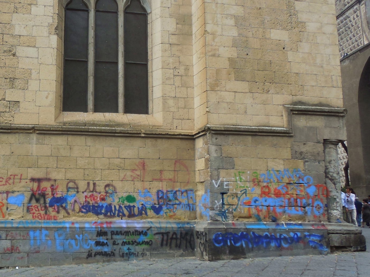 外の柱の下の方は落書きがたくさんされていました。- 旅行時期